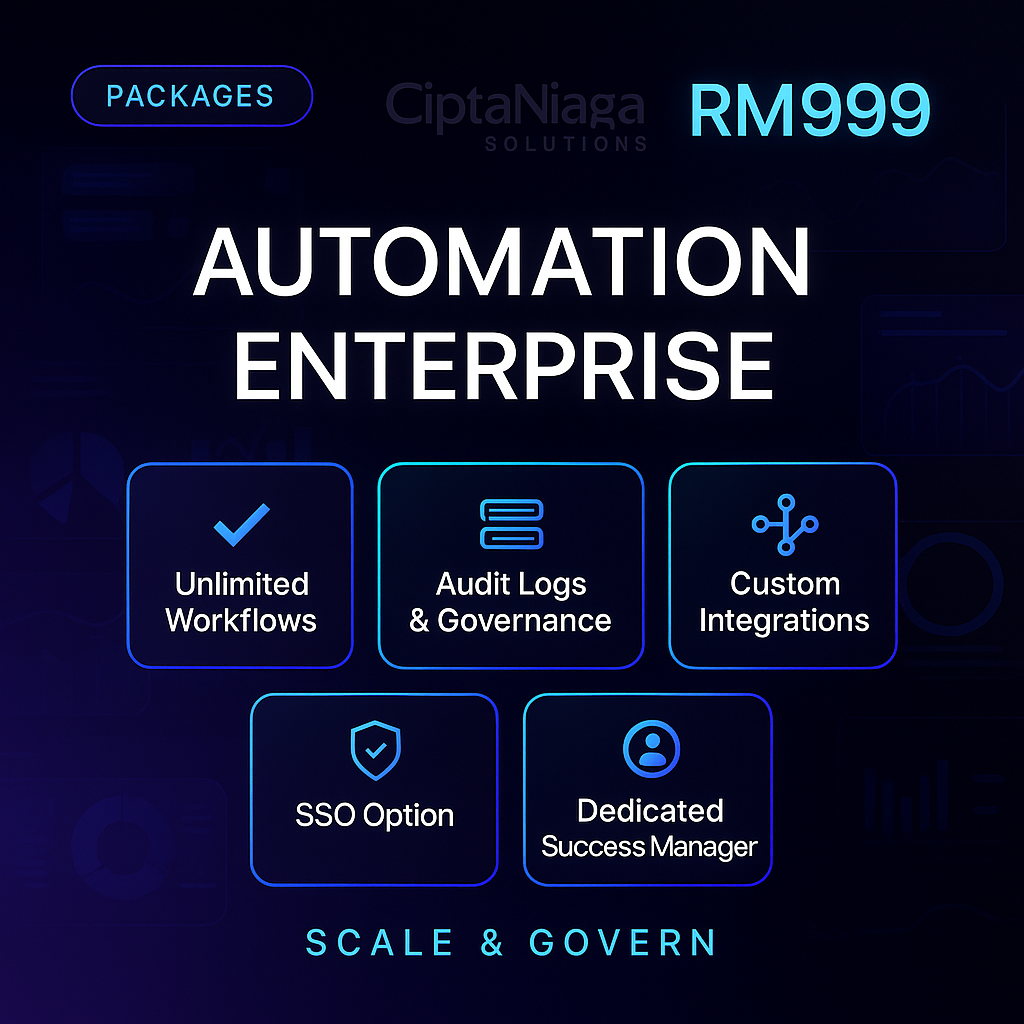 CiptaNiaga Solutions integrates your tools into one reliable flow. Connect payments, CRM, accounting and operations, cut manual work, and accelerate delivery with secure, real-time data.